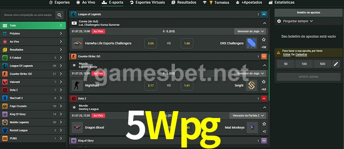 A aposta 5Wpg oferece aos jogadores a experiência mais conveniente de apostas em eSports!